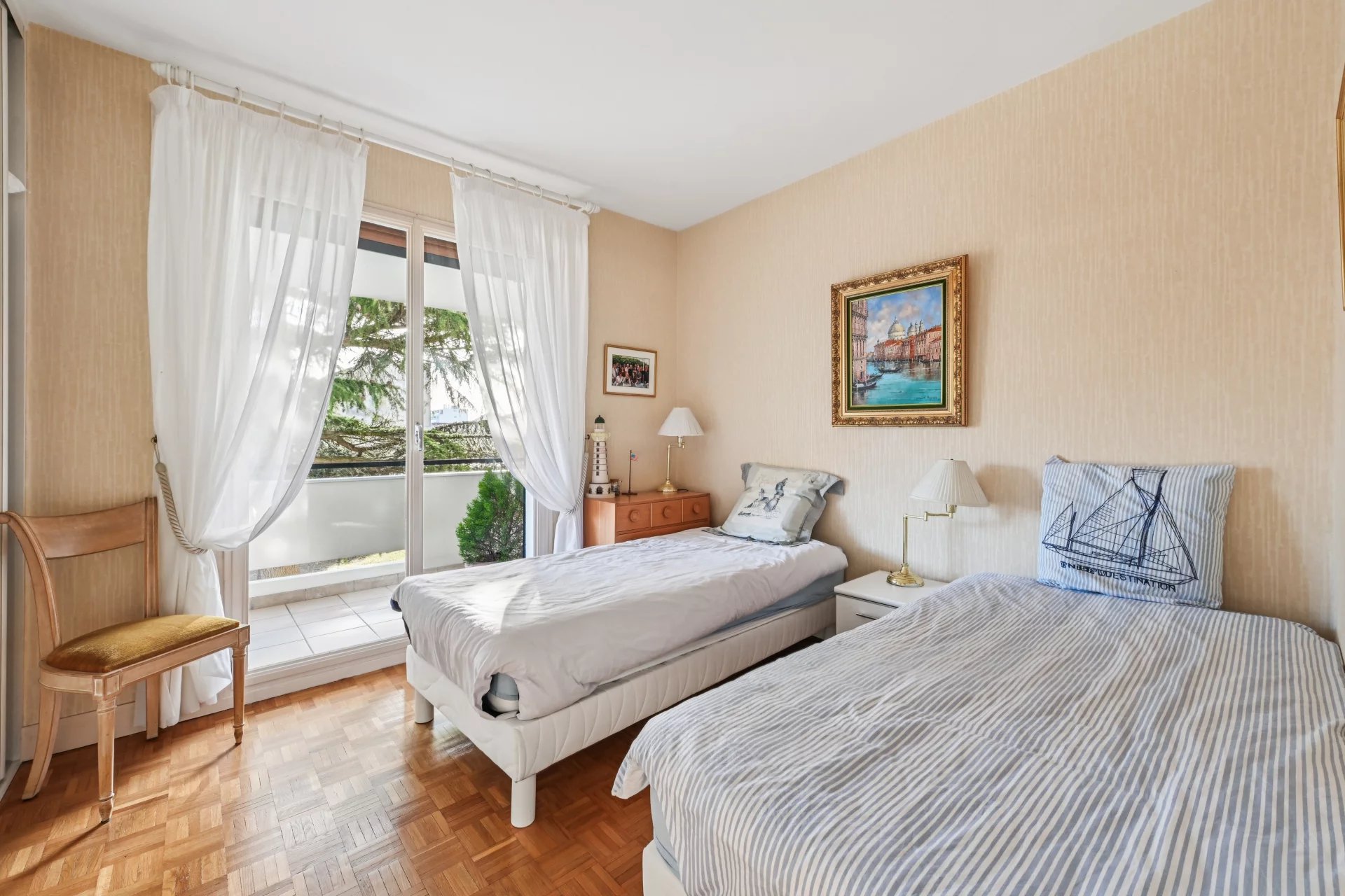 Trois chambres confortables, toutes équipées de placards intégrés.