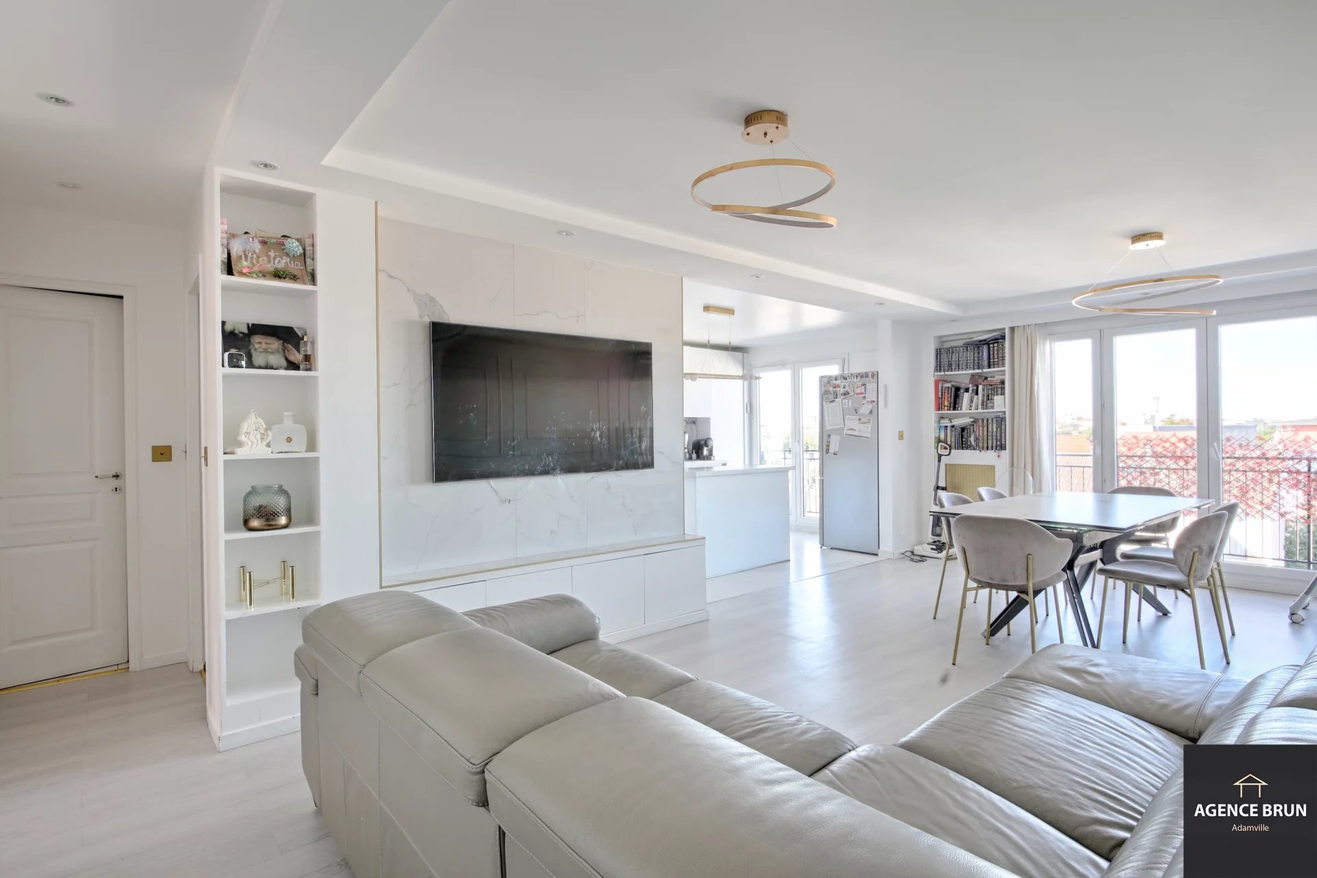L’espace de vie principal, un salon avec cuisine américaine de 40 m², est baigné de lumière et pensé pour la convivialité.